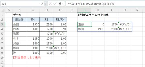 Excelで、FILTER関数を使ってデータのうちエラーがある行/ない行だけを抽出する方法についてです。 エラーが存在する(かもしれない)行が1列の場合と複数列の場合の例をそれぞれ紹介します。 チェック対象が1列の場合 エラーがある行を抽出する方法 エラー…